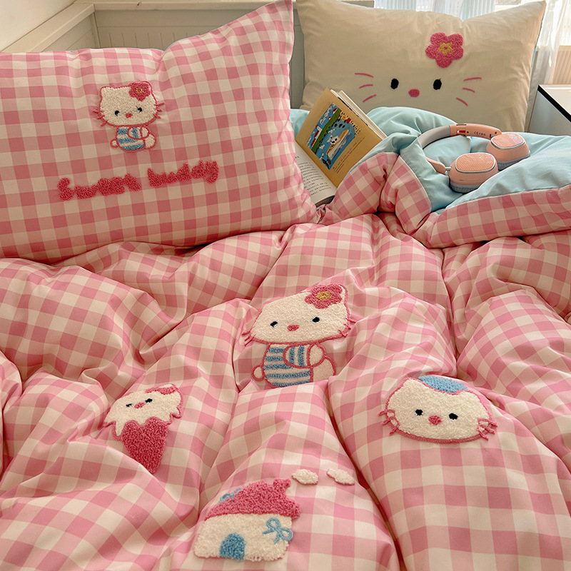 Симпатичные KT кошка полотенце вышитая хлопчатобумажная кровать набор из четырех частей растения кашемировые простыни люди одеяло набор из трех частей