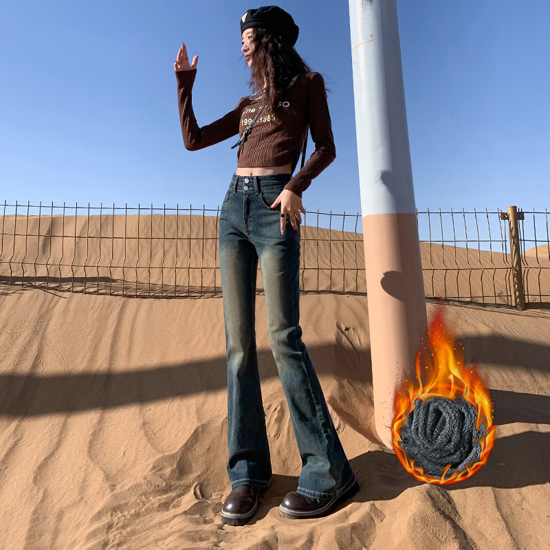 Главная страница > Высококачественные черные джинсы с высокой талией для женщин, осенне-зимние, на флисовой подкладке, утолщенные, универсальные, облегающие, эластичные, слегка расклешенные брюки.