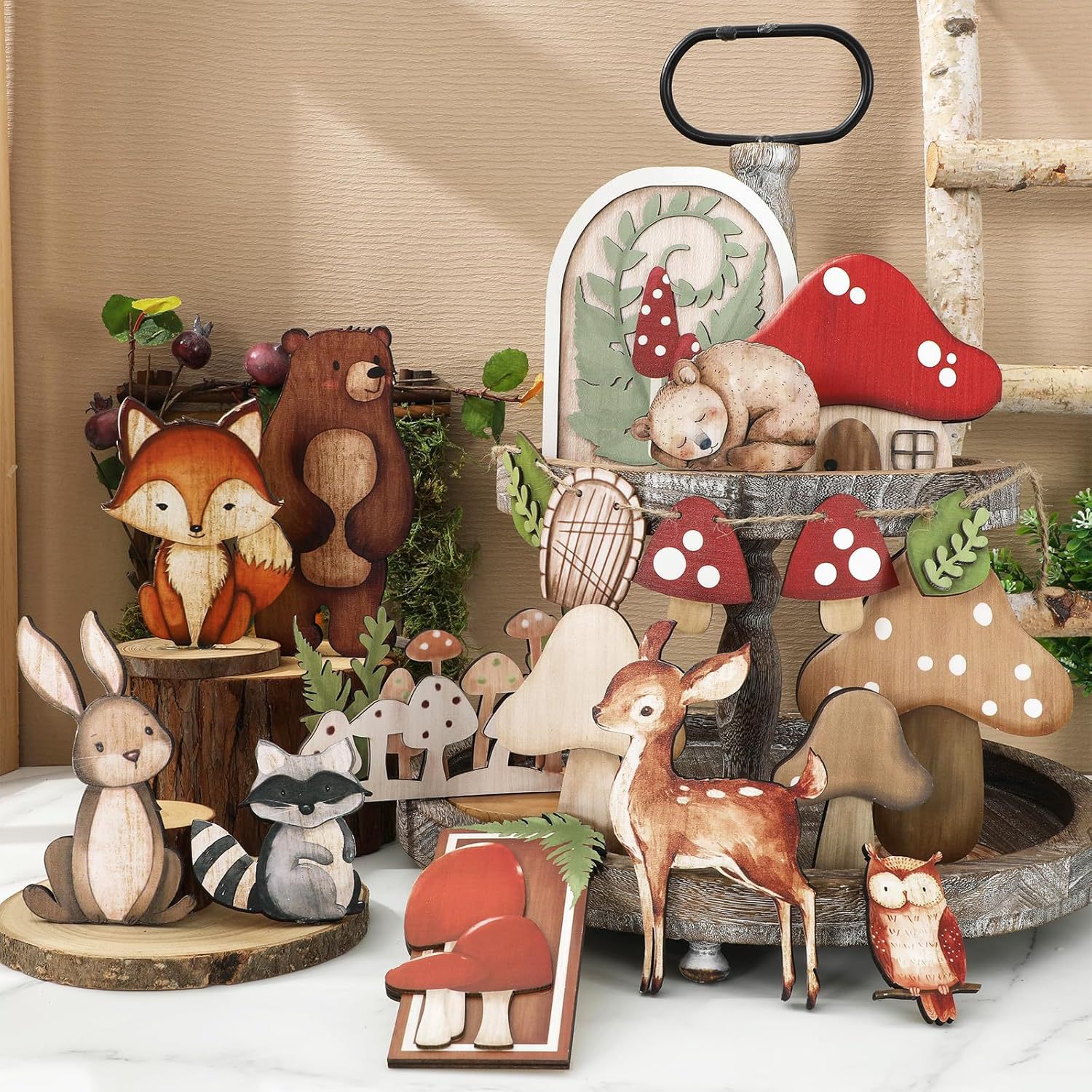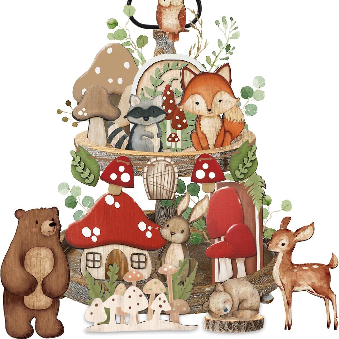 Главная страница > 19 шт., многоуровневый поднос с милыми животными, декор для фермерского дома, декор в виде грибов, день рождения, детский душ, домашняя школа