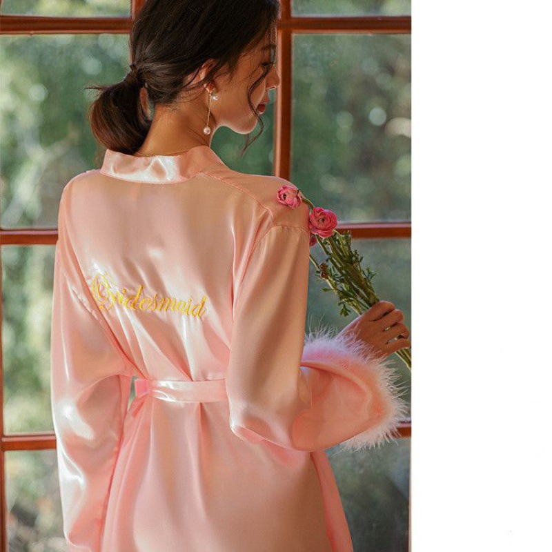 Главная страница > Летний тонкий халат с вышивкой перьями для женщин, свадебный халат для подружек невесты, летний халат для сестер, кардиган-халат, весна.