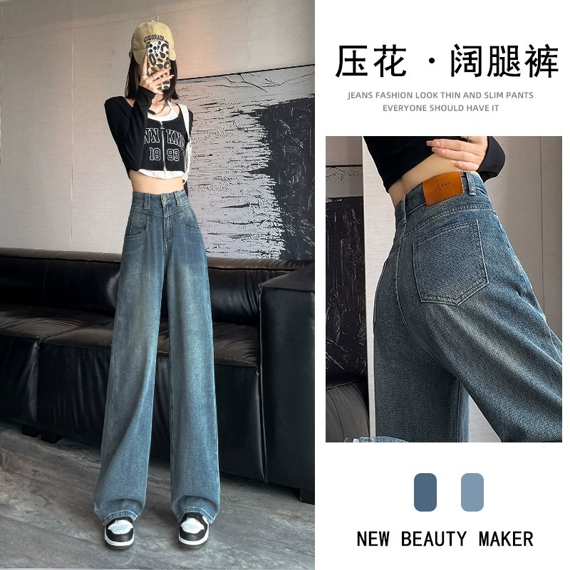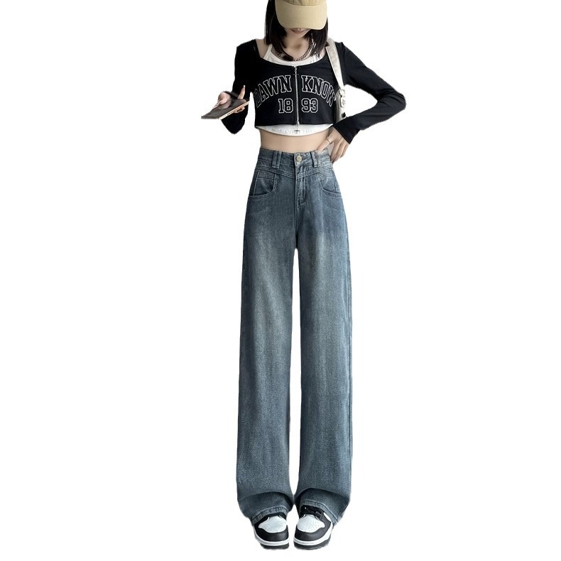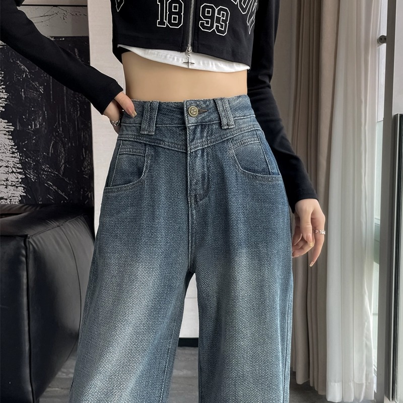 Главная страница > Винтажные широкие джинсы с высокой талией, женские осенние 2023, новые прямые свободные стройнящие миниатюрные драпировочные брюки