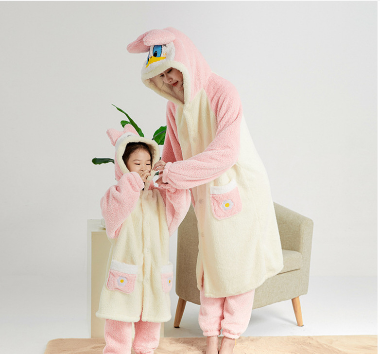 Главная страница > Осенне-зимний домашний халат-ночнушка для девочек с милым мультяшным принтом: зеленый король-свинья, повар, собака, торт, желтая курица, Дональд Дак
