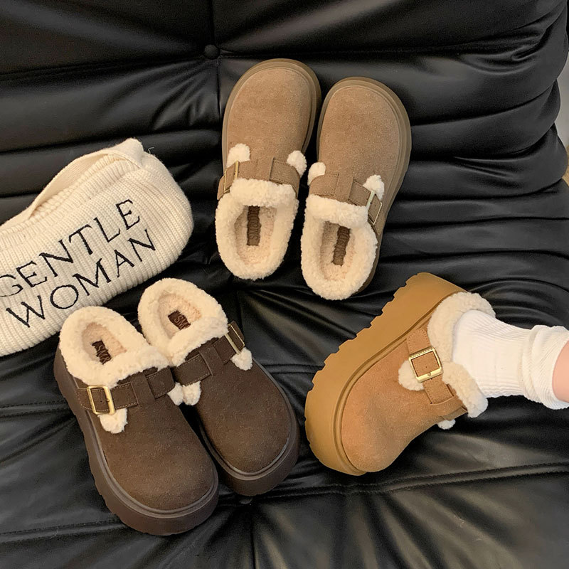 Главная страница > Ретро плюс бархат с толстой подошвой хлопчатобумажные тапочки для женского ношения 2024 новый осенний и зимний ленивый один педаль, чтобы увеличить ботинки Birkenn