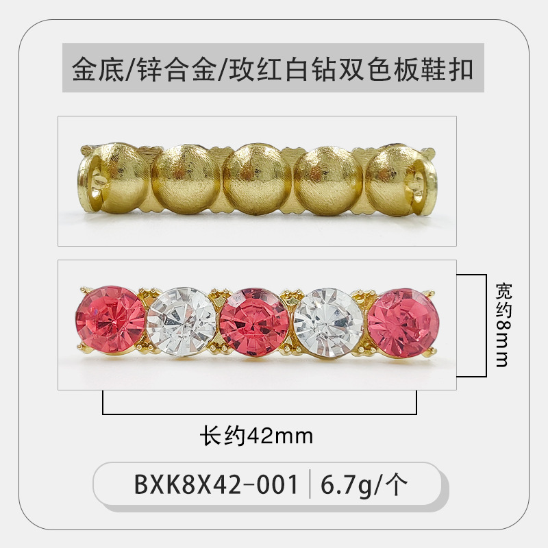 № 13/C0192 золотая основа-3 розово-красная + 2 белые бриллиантовые двухцветные пряжки для кроссовок