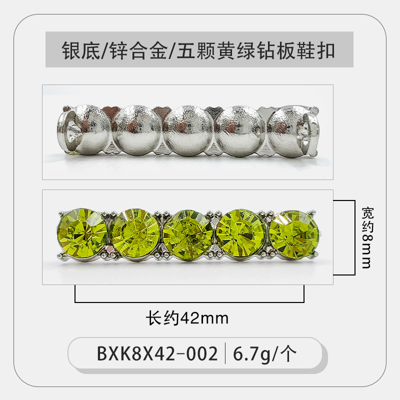 No 3/C0137-Пять желто-зеленых пряжек для кроссовок с бриллиантами на серебристом фоне