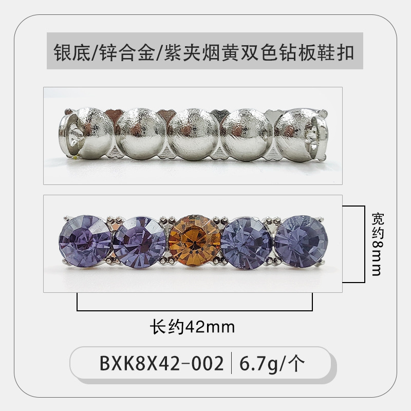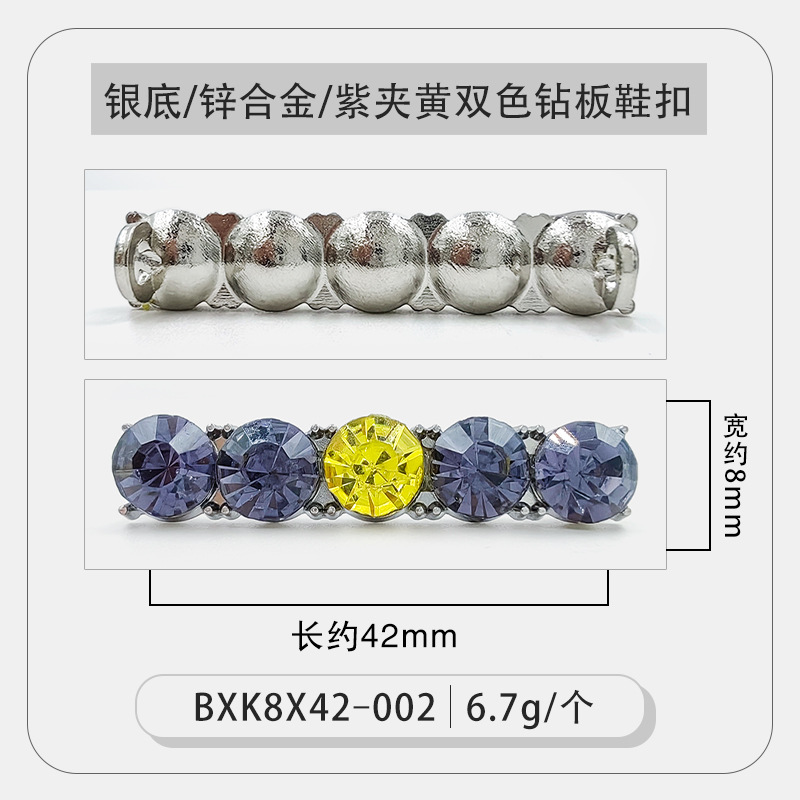 No 22/C0109-Серебряная нижняя фиолетовая клипса дымчато-желтая двухцветная пряжка для кроссовок с бриллиантами