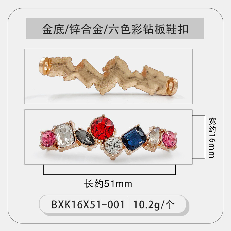 № 29/Guangdong Gold C0095-Золотая нижняя шестиколоровая пряжка для обуви с ромбовидной пластиной (красная)