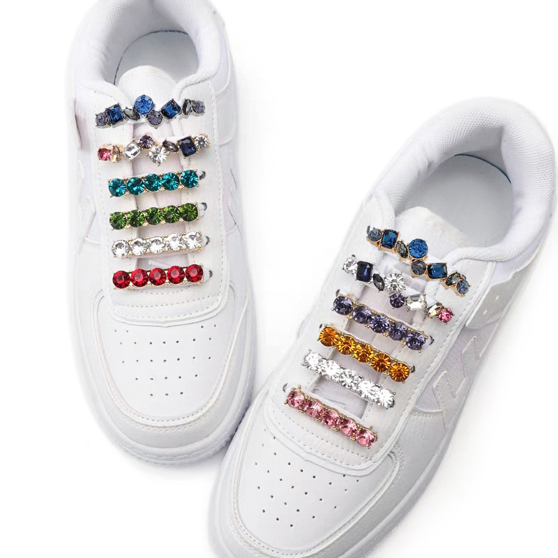 No 28/C0080-серебряная нижняя шестицветная пряжка для кроссовок с бриллиантами (синяя)