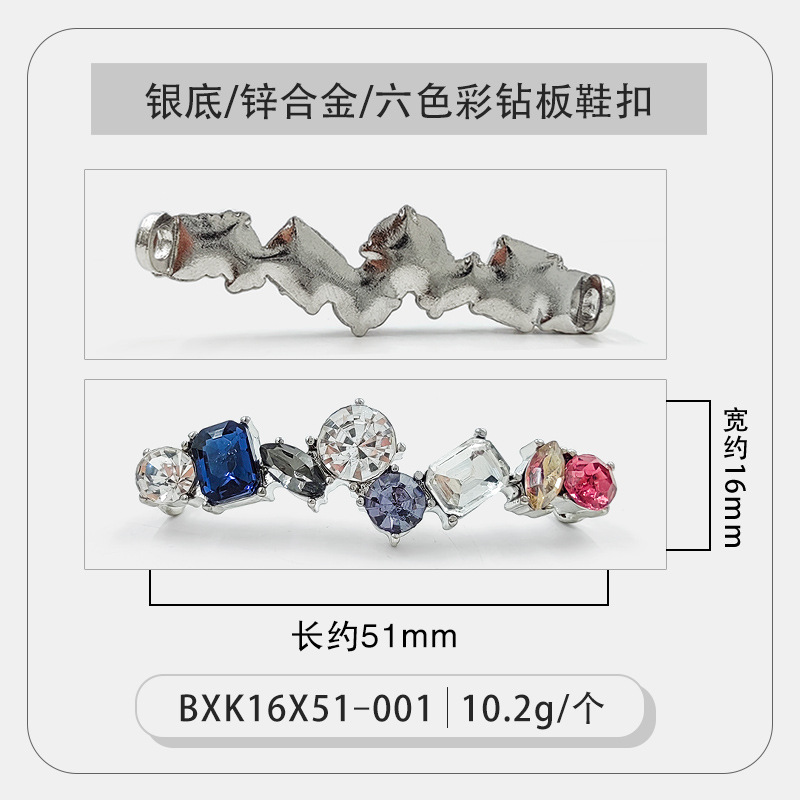No 19/C0174-Серебряная нижняя пряжка для кроссовок светлого цвета с радужным бриллиантом