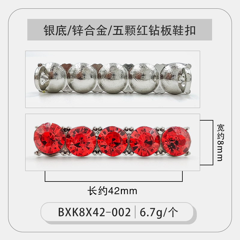 No 7/C0130-пять пряжек для кроссовок с красным бриллиантом на серебряном фоне