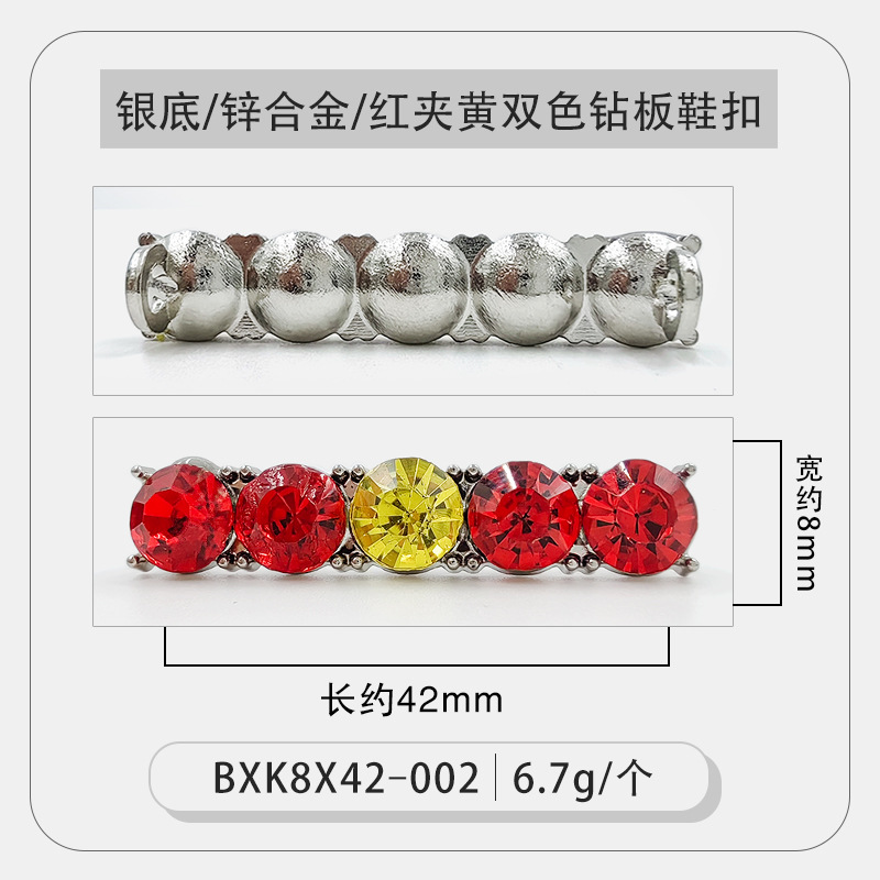 No 23/C0112-серебристый низ, красный зажим, желтая двухцветная пряжка для кроссовок с бриллиантами