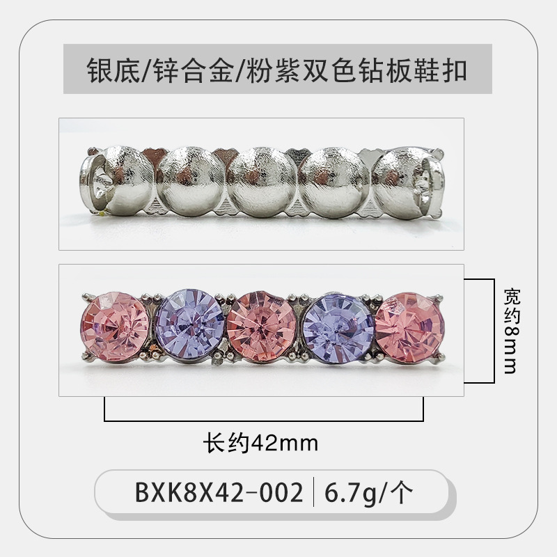 № 16/C0175 серебряная основа-3 розовая + 2 лавандовая двухцветная пряжка для обуви с ромбовидной пластиной