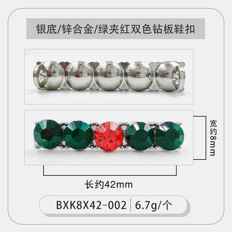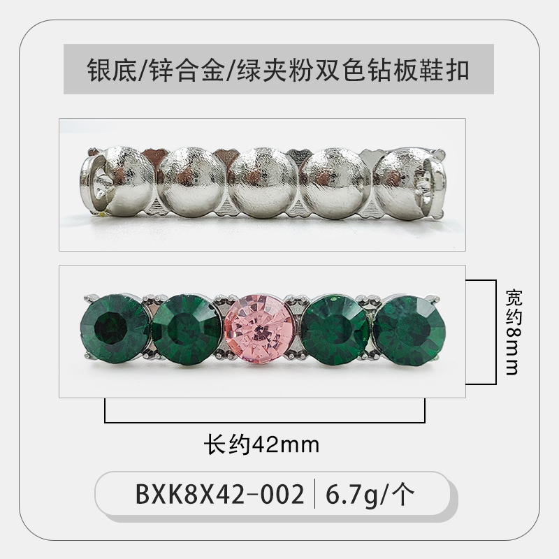 No 25/C0110-серебристый фон, зеленый зажим, розовая двухцветная пряжка для кроссовок с бриллиантами