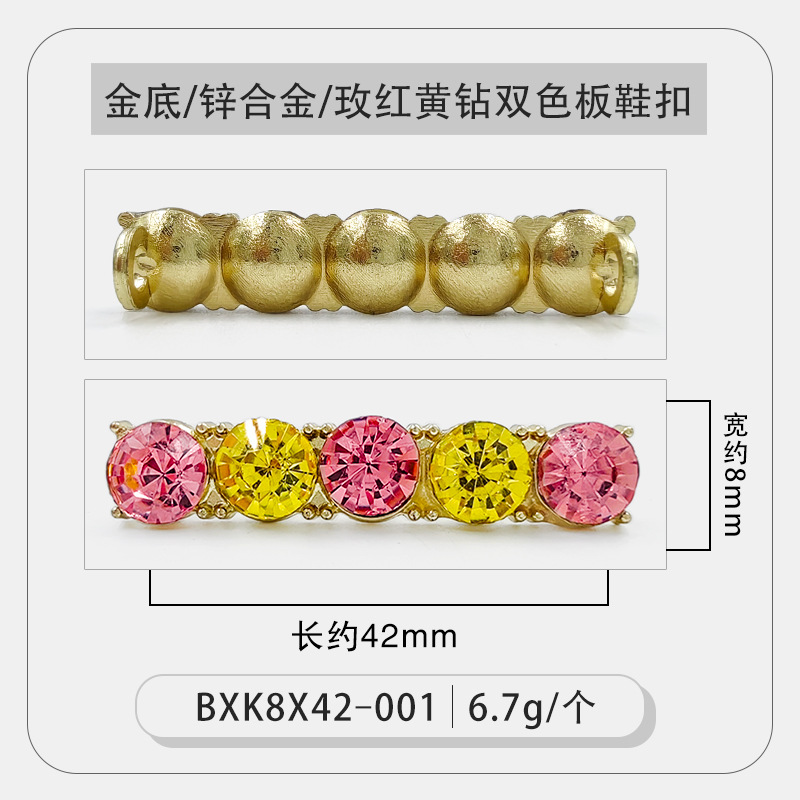 № 15/C0188 золотая основа-3 розово-красный + 2 лимонно-желтые желтые бриллиантовые двухцветные пряжки для кроссовок