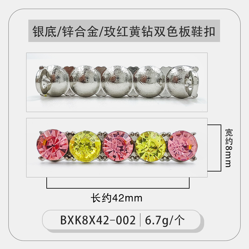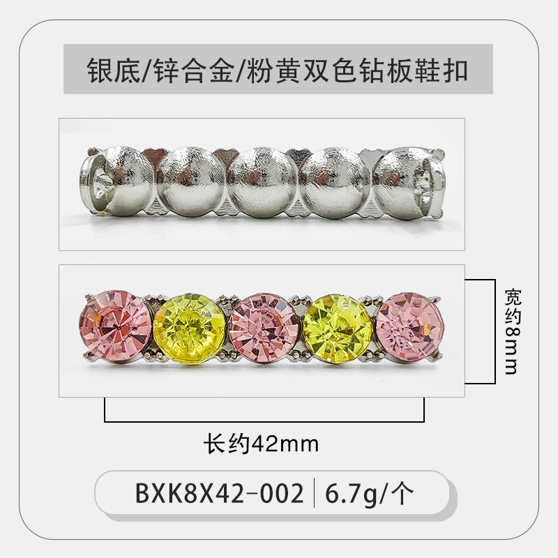 № 14/C0173 серебряная основа-3 розовый + 2 лимонно-желтые двухцветные пряжки для обуви с ромбовидной пластиной