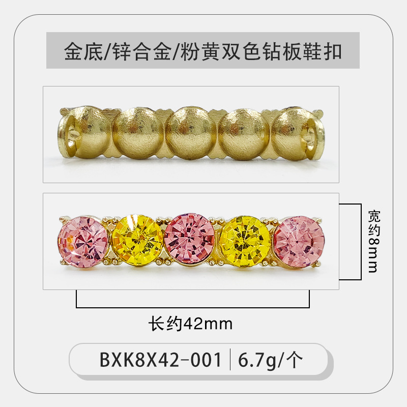 № 14/C0189 золотая основа-3 розовый + 2 лимонно-желтые двухцветные пряжки для обуви с ромбовидным узором