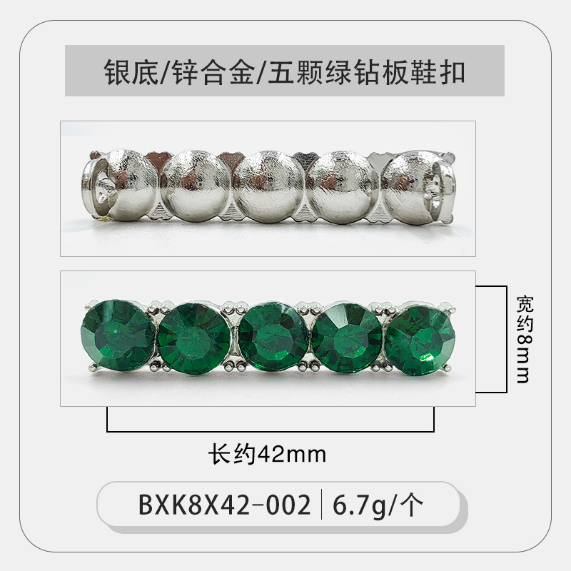 No 8/C0138-Серебряные нижние пряжки для кроссовок с пятью зелеными бриллиантами