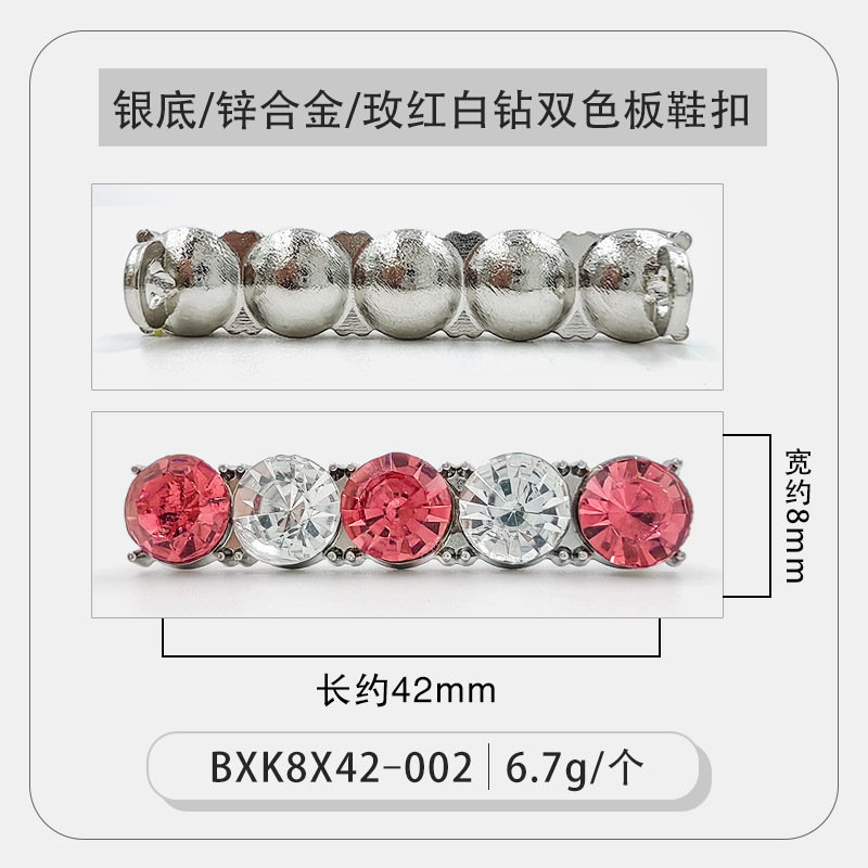 № 13/C0176 серебряная основа-3 розово-красная + 2 белые бриллиантовые двухцветные пряжки для кроссовок