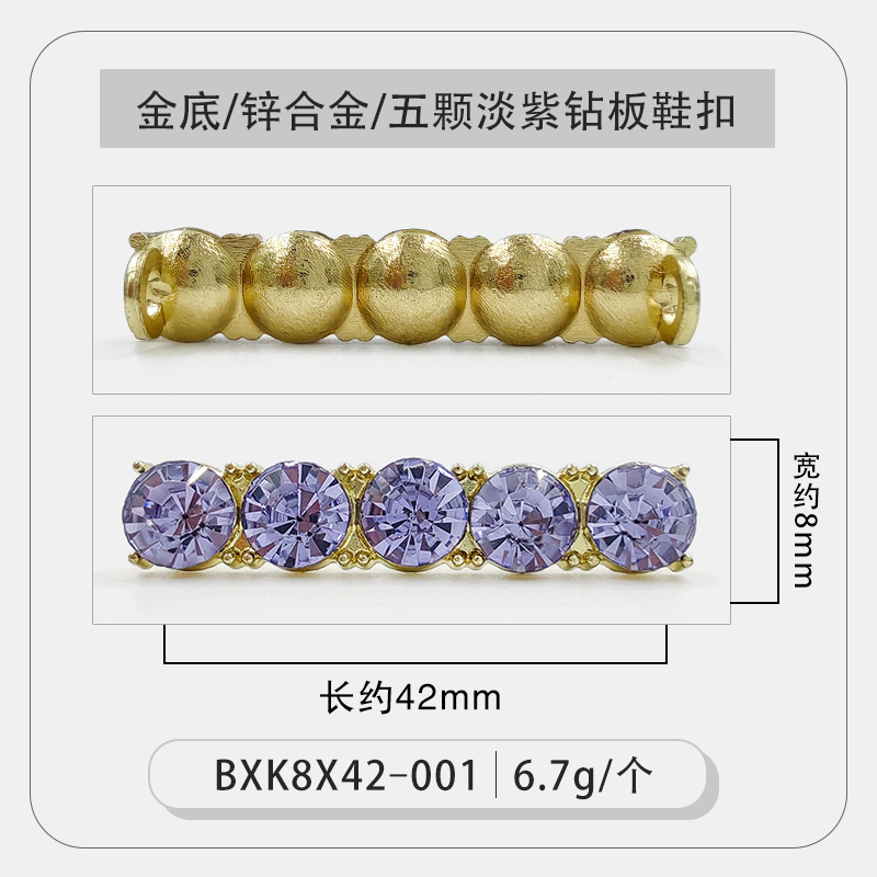 No 11/C0134-Пять сиреневых бриллиантовых пряжек для кроссовок с серебряным фоном