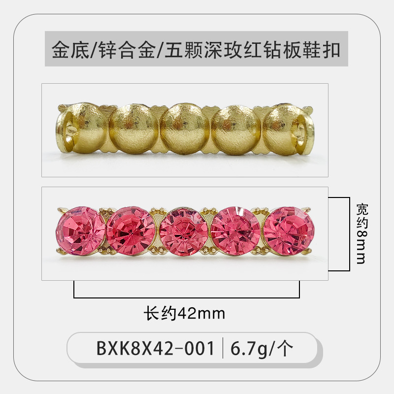No 6/C0131-Пять темно-розовых пряжек для кроссовок с бриллиантами и серебряной основой