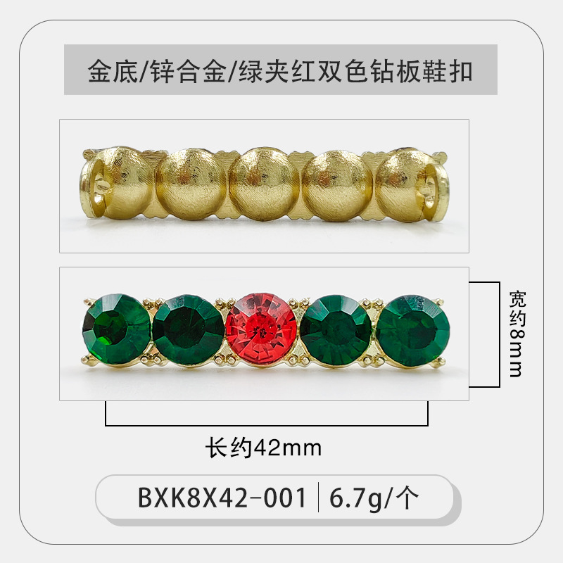 No 26/C0160-золотой фон, зеленый зажим, красная двухцветная ромбовидная пряжка для кроссовок