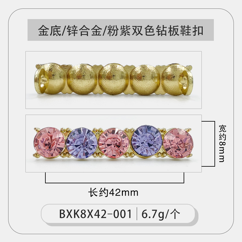 № 16/C0191 золотая основа-3 розовый + 2 лавандовые двухцветные пряжки для обуви с алмазной пластиной