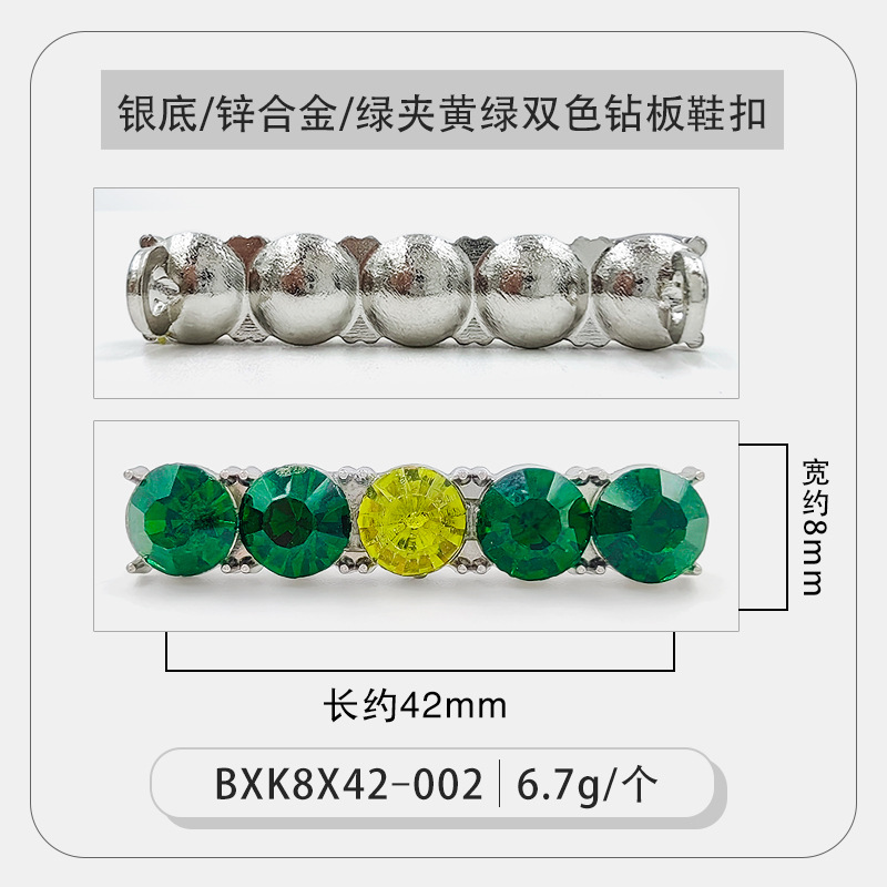 No 24/C0111-Серебряная нижняя зеленая клипса, желто-зеленая двухцветная пряжка для кроссовок с бриллиантами