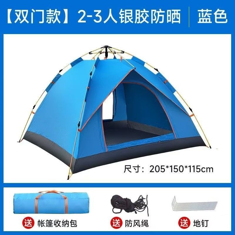 [Классический] Автоматическая складная палатка с двойной дверью на 2-3 человека. Синий