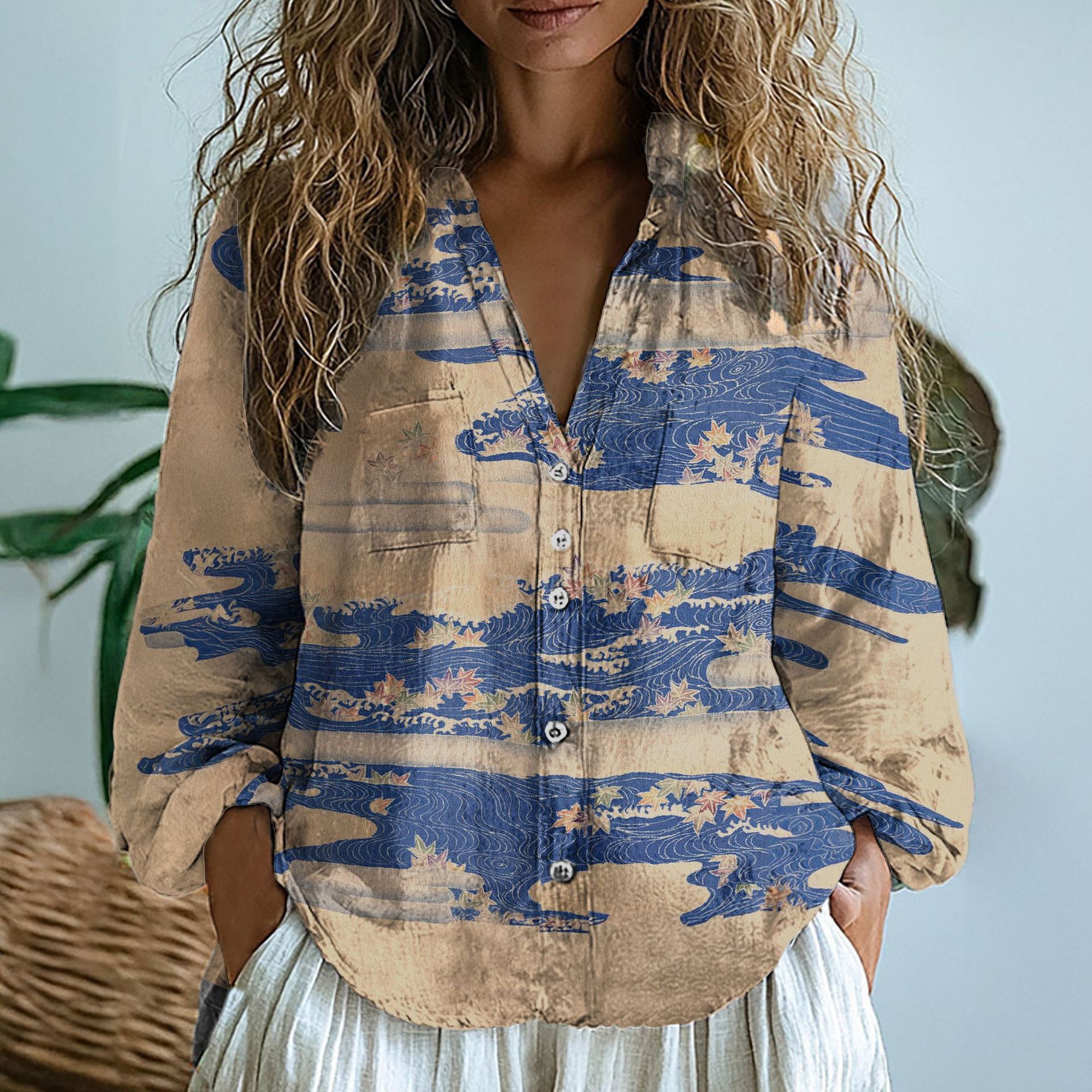 Главная страница > Новые женские рубашки 2025 года для экспорта, 3D-печать, изысканные льняные ткани, можно заказать на Amazon
