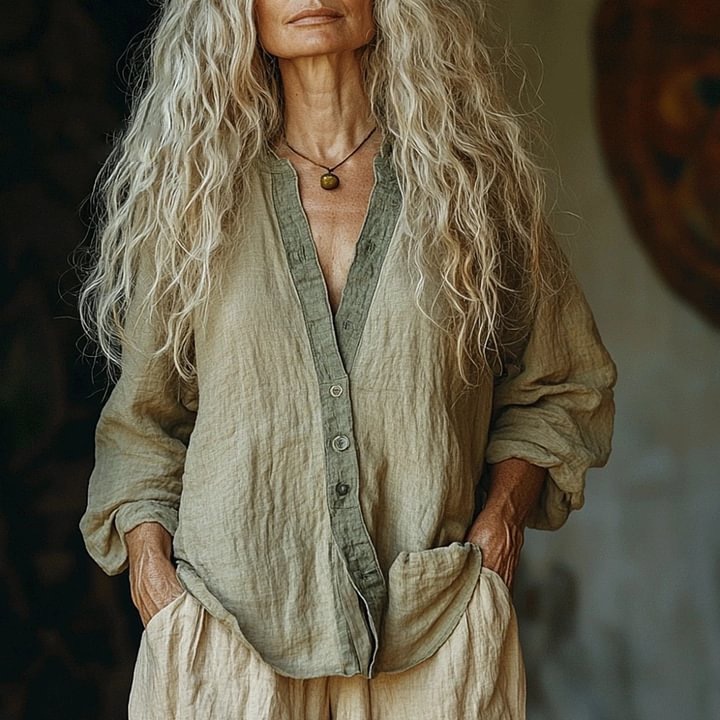 Льняная рубашка с длинным рукавом 002