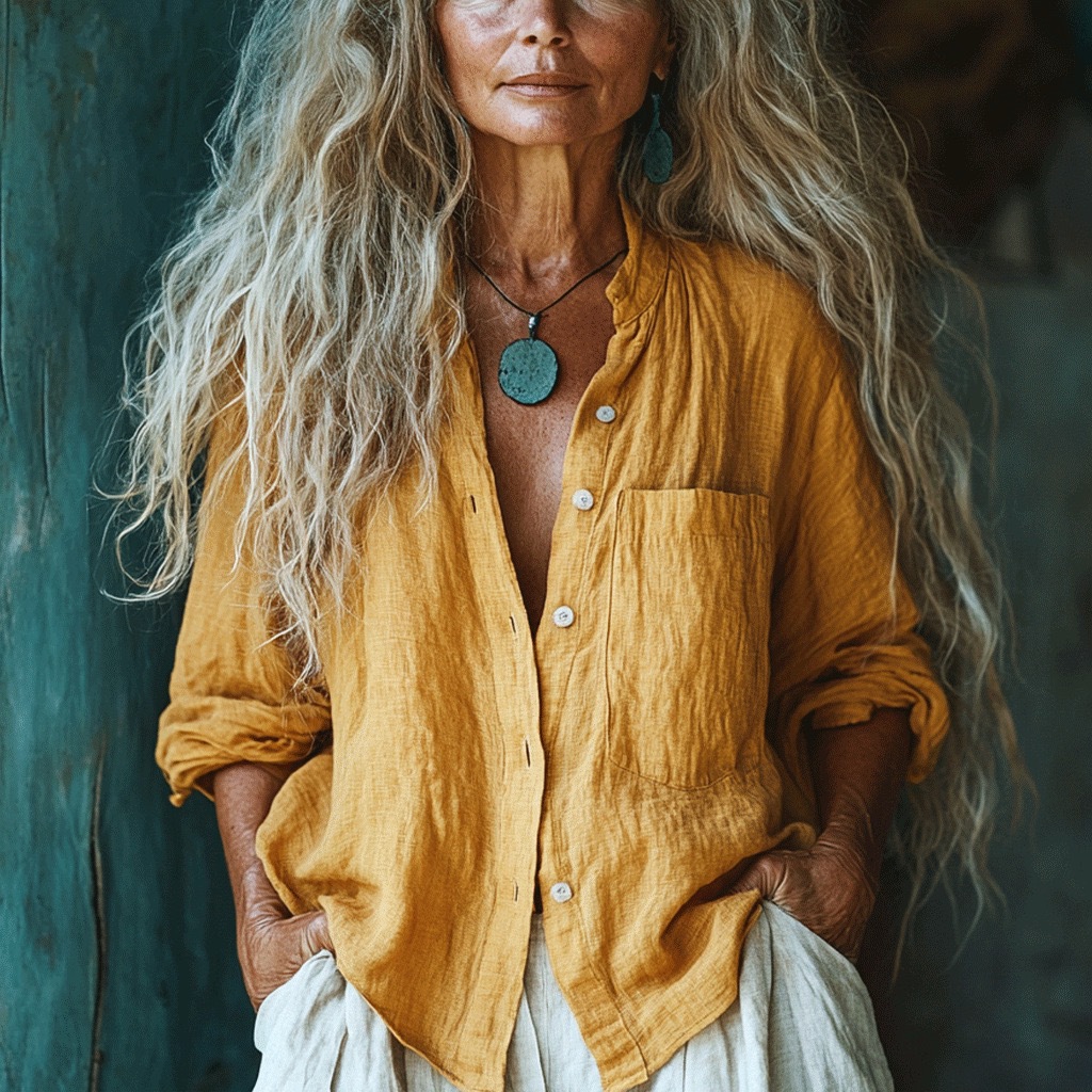 Льняная рубашка с длинным рукавом 004