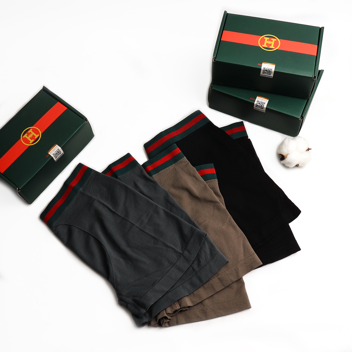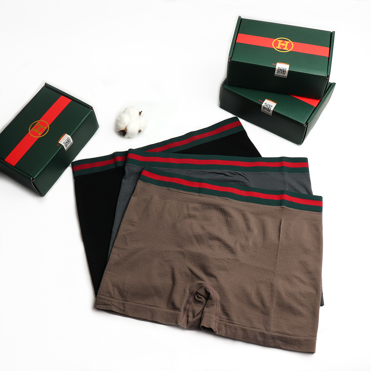 В наличии модный бренд HG Kuqi в коробке Мужское нижнее белье контрастного цвета Бесшовные дышащие спортивные высокоэластичные удобные бесшовные боксеры