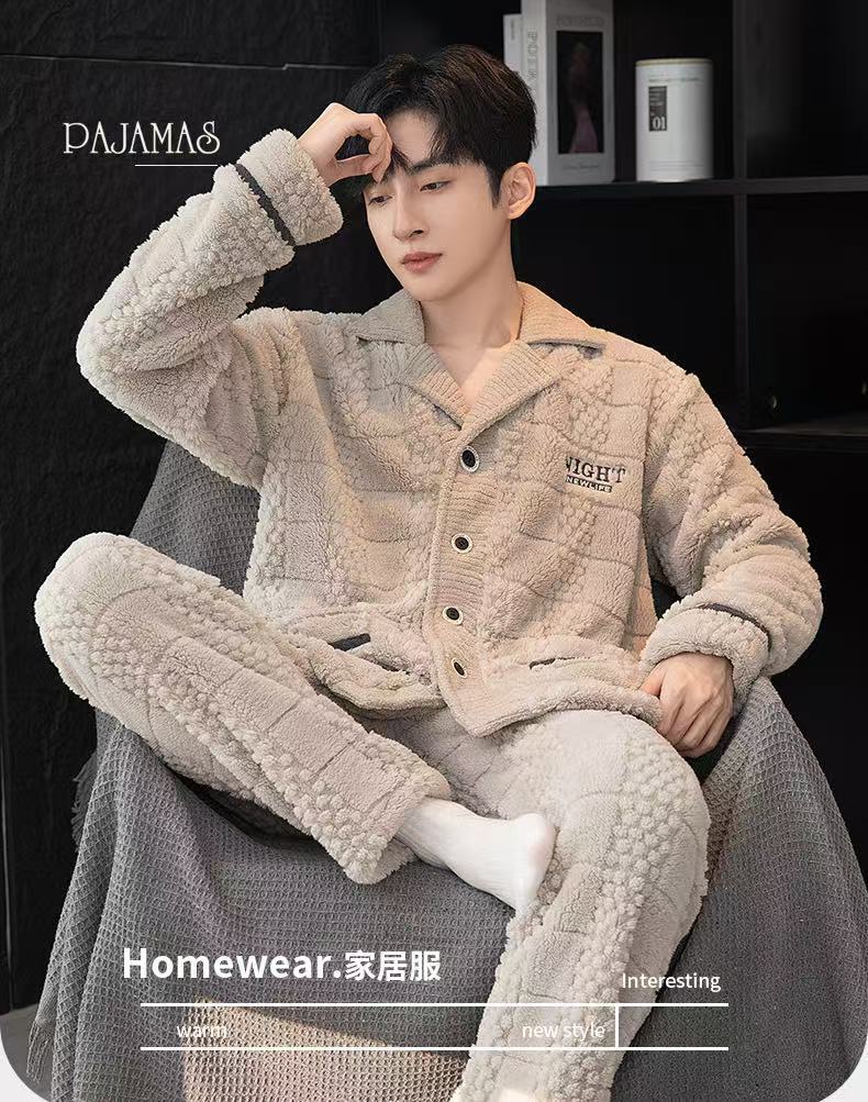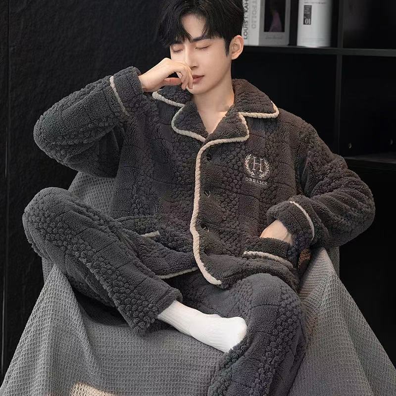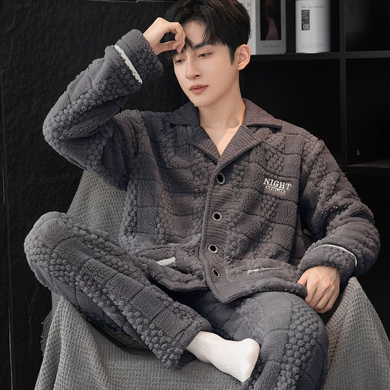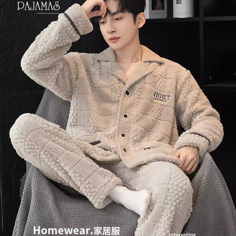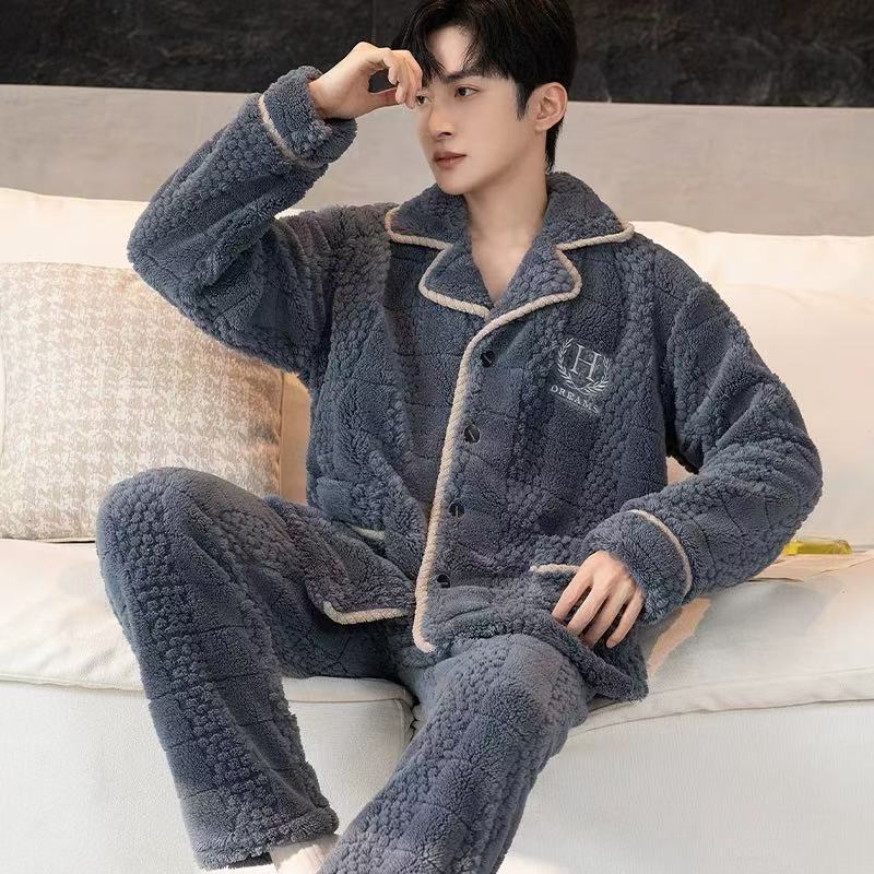 Главная страница > Зимние мужские пижамы, мужские бархатные утолщенные коралловые бархатные пижамы, мужские осенние фланелевые осенне-зимние домашняя одежда больших размеров, зимняя одежда