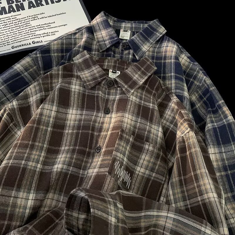 Главная страница > Американская ретро рубашка с длинным рукавом для мужчин, новая весенняя свободная повседневная высококачественная универсальная клетчатая рубашка