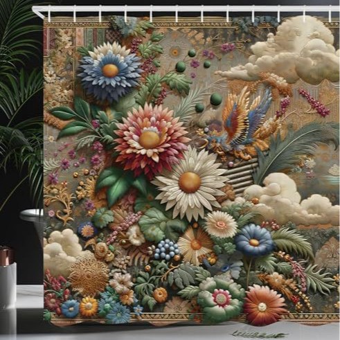 Главная страница > Занавеска для душа с цветочным принтом, ретро-декор для фермерского дома, садовые цветы, растения, классический комплект из полиэфирной ткани с 12 крючками