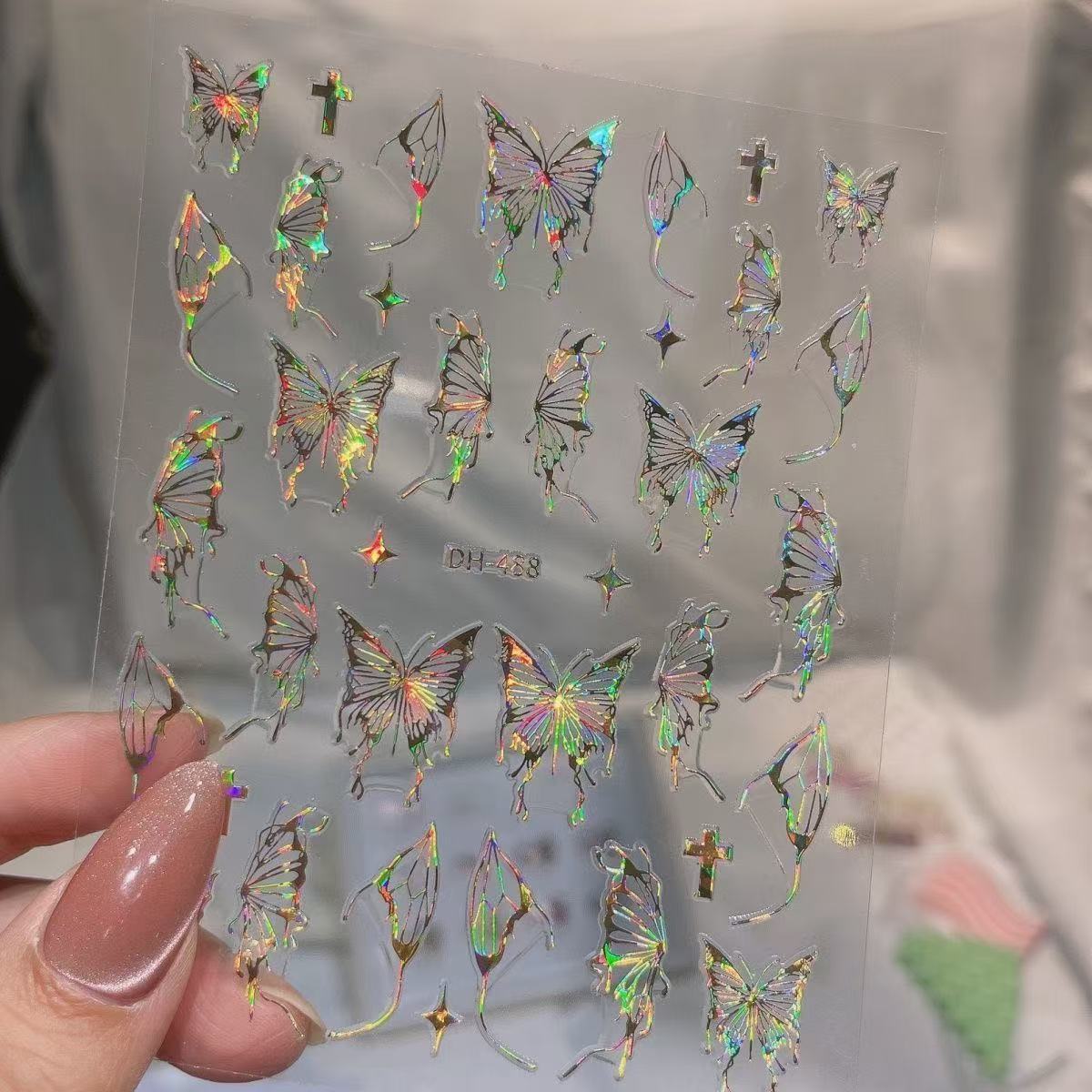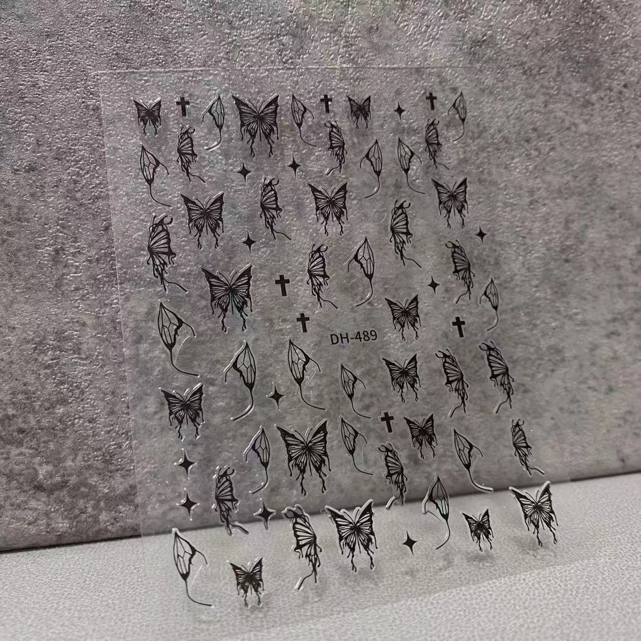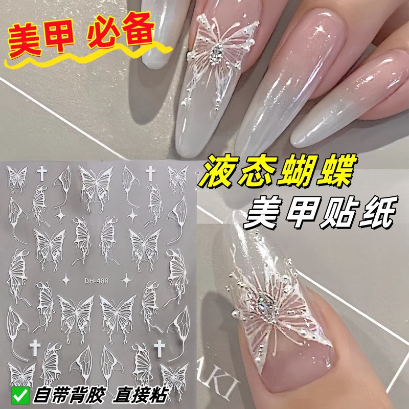 Маникюр рисованной жидкой бабочки наклейка серебряный темно-черный водонепроницаемый ins вырезающий черно-белый серебряный наклейка маленькая красная книга