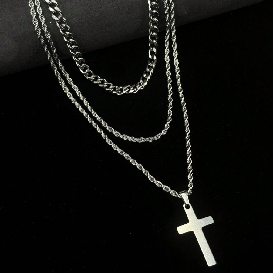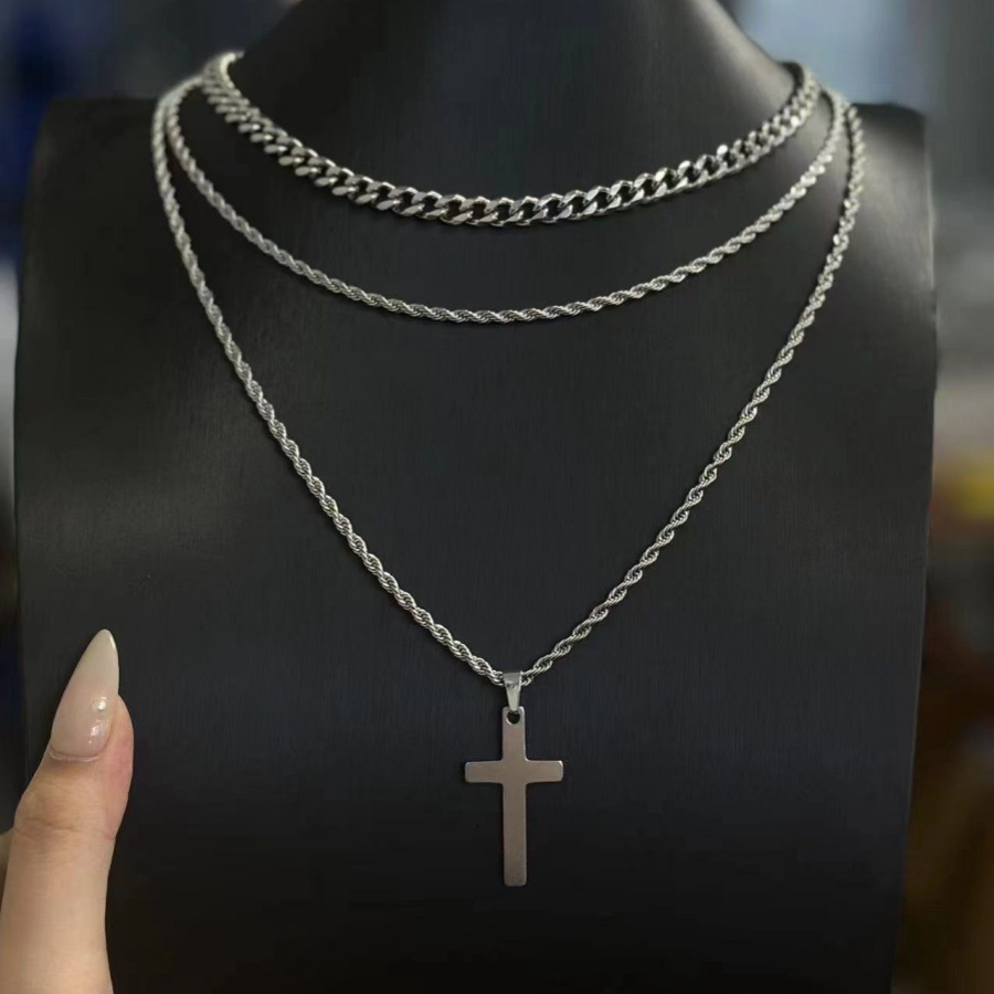 Главная страница > Трансграничный новый взрыв из нержавеющей стали Твистовая цепь змеиная кость цепь кубинская цепь двойной крест кулон украшения титановая сталь ожерелье