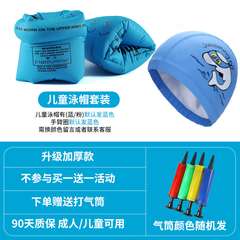 Модернизированная утолщенная версия - синяя + детская шапочка для плавания + детские очки для плавания, бесплатный насос.