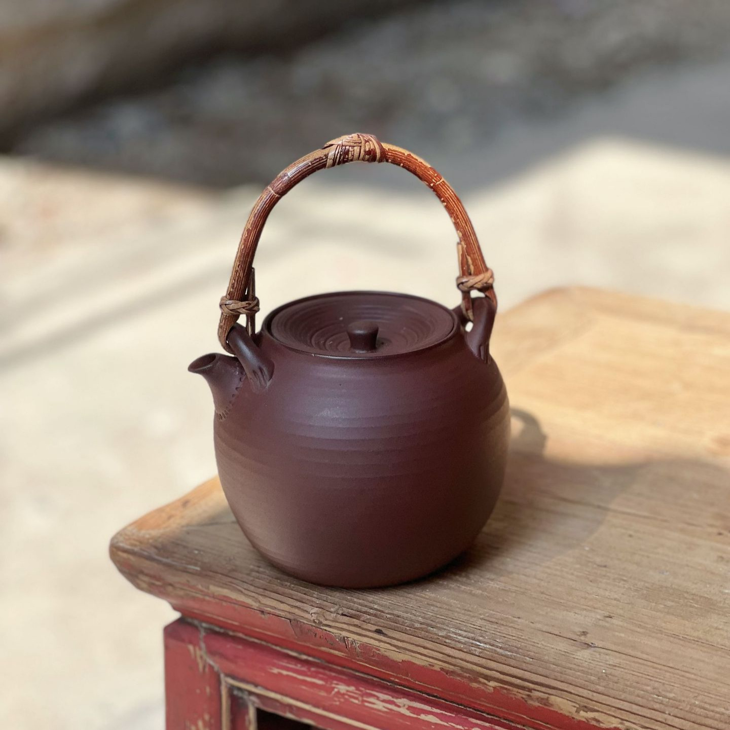 Чайник из необработанной фиолетовой глины для приготовления полезного чая, кипячения воды, белого чая и чая пуэр, подходит для электрической керамической плиты или угольной печи, ручной работы.
