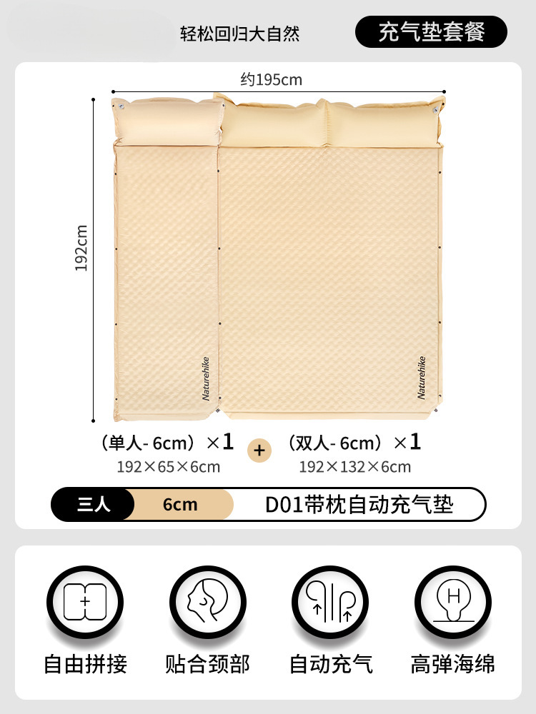 [Эластичная губка высотой 6 см для трех человек] Сращивание воздушной подушки кремового цвета в том же стиле