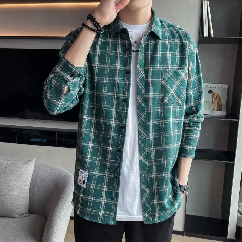 Главная страница > Весна и осень новая модная клетчатая рубашка мужская Свободная Повседневная куртка с длинным рукавом в гонконгском стиле Молодежная красивая рубашка модная