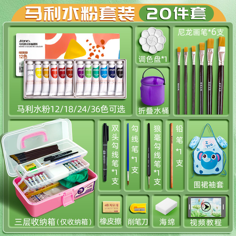 Набор гуашевых красок из 20 предметов + [красный ящик для инструментов/Кисть Марли]