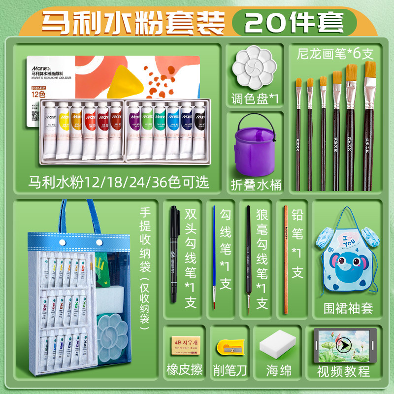 Набор гуашевых красок из 20 предметов + [красная сумочка/Кисть Марли]