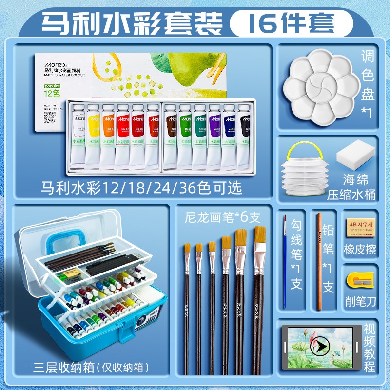 Набор акварельных красок из 16 предметов + [синий набор инструментов]