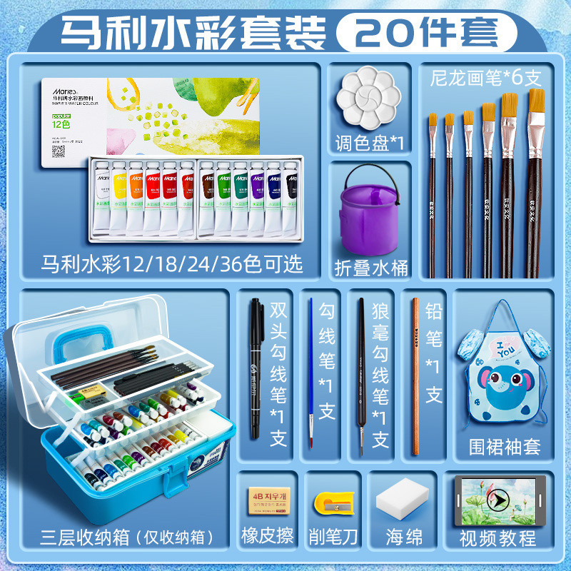Набор акварельных красок из 20 предметов + [синий ящик для инструментов/Кисть Марли]