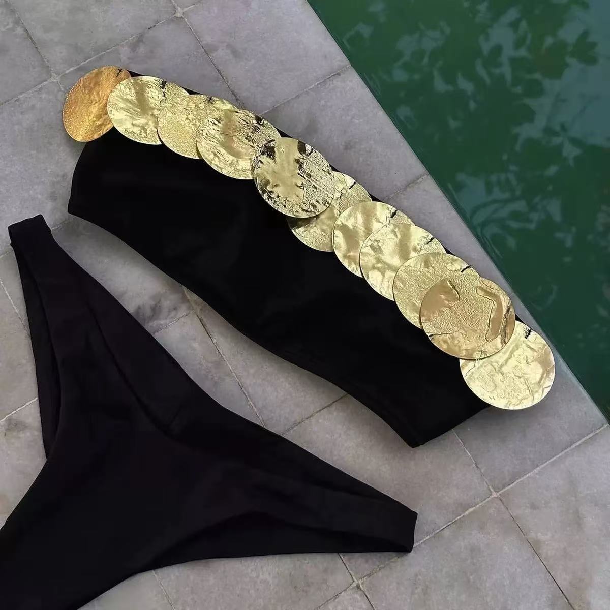 Новый трансграничный женский купальник-бандо, сексуальный металлический модный высококачественный купальник в европейском и американском стиле, женский купальник для внешней торговли