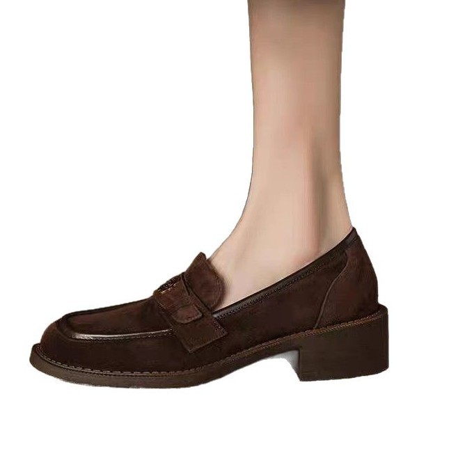 Главная страница > Женские лоферы из натуральной овечьей замши с цветочным принтом, на толстом среднем каблуке, с круглым носком, весна 2025, в корейском стиле