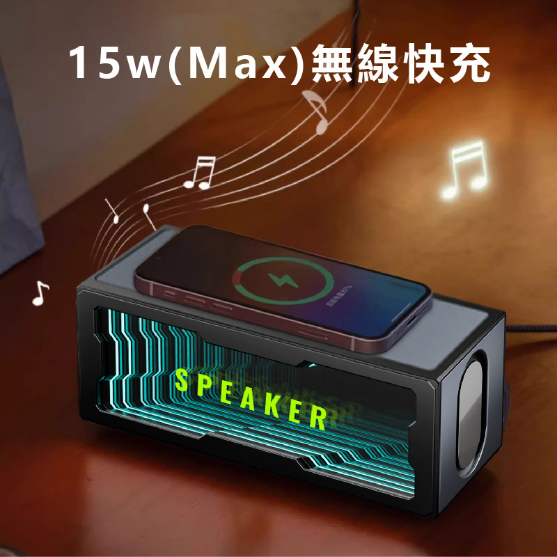 Частная модель, креативный новый продукт, умное зеркало Abyss, Bluetooth-динамик, 15 Вт, беспроводная зарядка, двойные динамики, красочный домашний маленький динамик