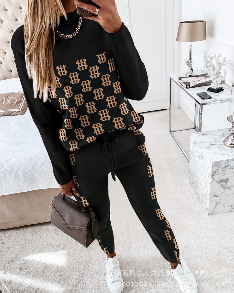 Костюм (комплект) 2020: новый европейско-американский стиль, высокий воротник, длинные брюки, повседневный комплект из двух предметов, осенне-зимний свитшот для женщин YS2455, модный повседневный стиль.