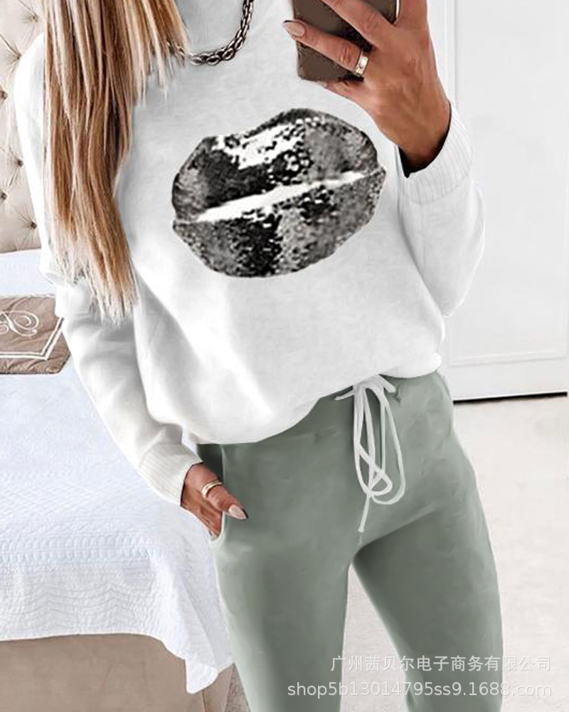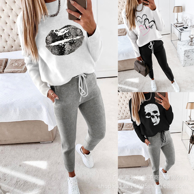 Главная страница > Костюм (комплект) 2020: новый европейско-американский стиль, высокий воротник, длинные брюки, повседневный комплект из двух предметов, осенне-зимний свитшот для женщин YS2455, модный повседневный стиль.
